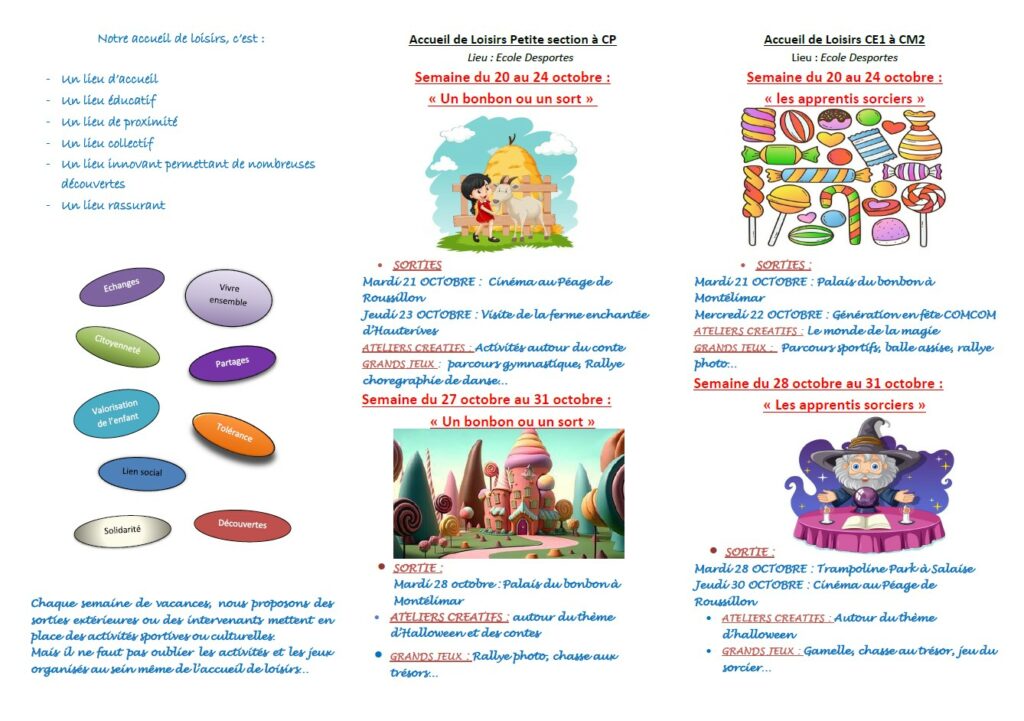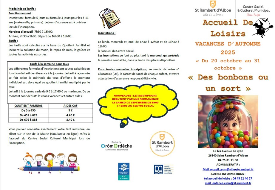 Vacances d'automne du 20 au 31 octobre 2025 :