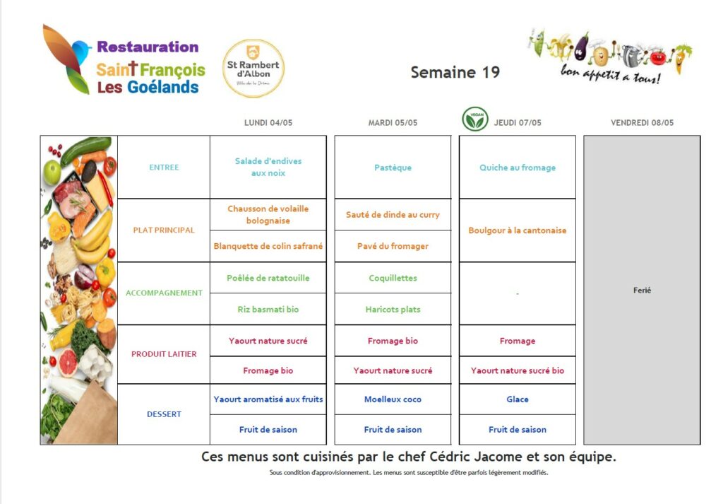 Au menu du 30 mars au 3 avril 2026