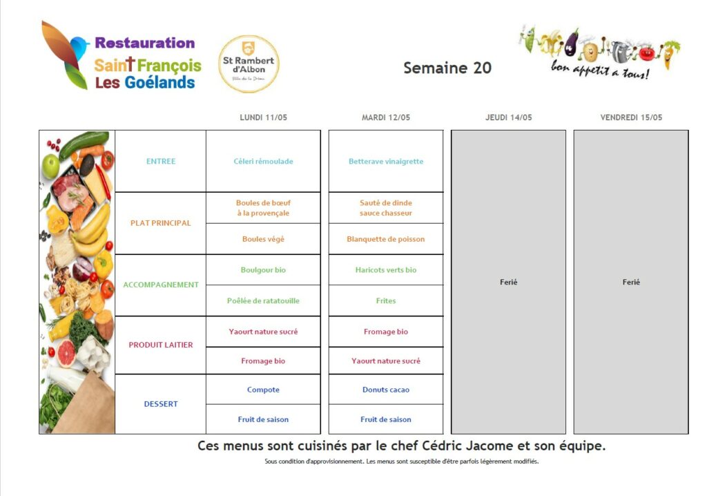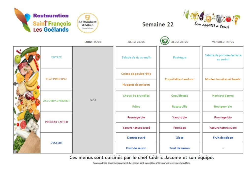 Au menu du 18 au 22 mai 2026