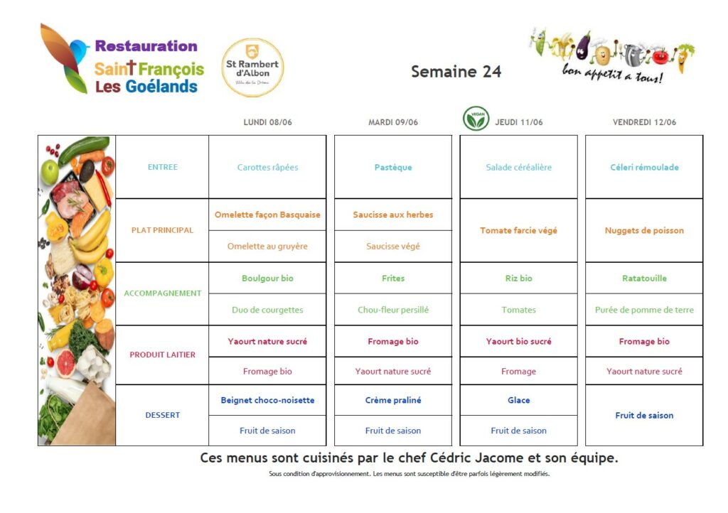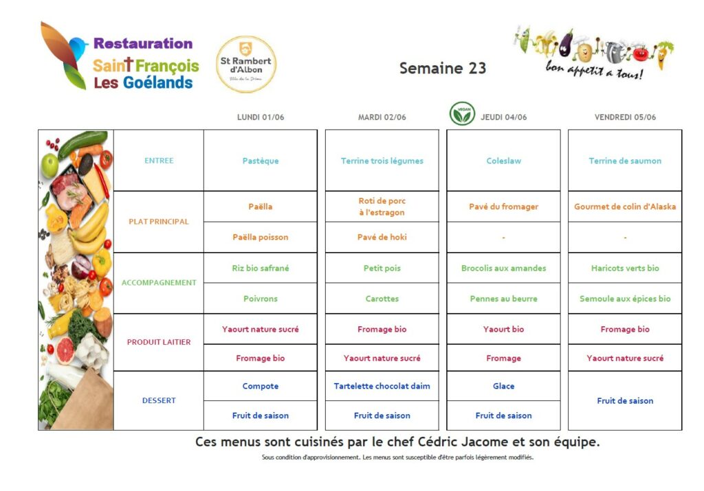 Au menu du 1er au 5 juin 2026