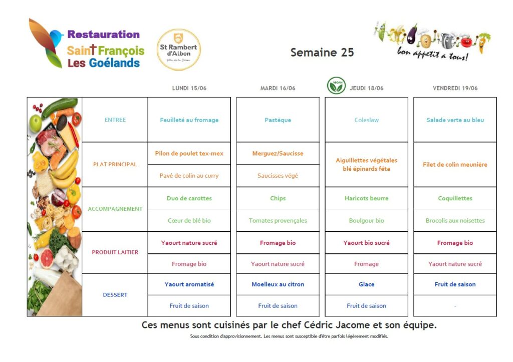 Au menu du 15 au 19 juin 2026