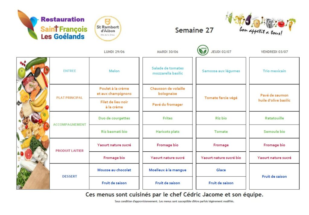 Au menu du 29 juin au 3 juillet 2026