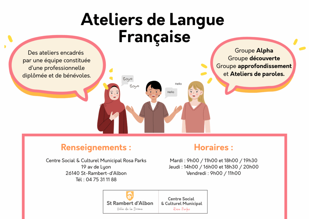 - Des cours de Français Langue Etrangère : différents niveaux en petits groupes.